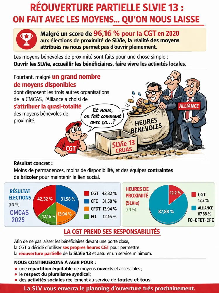 Début 2026, les OS élues au sein de l'alliance CMCAS Valence nous ont une fois de plus réduit le nombre d'heures nécessaires à l'ouverture de nos SLVie. SLVie13