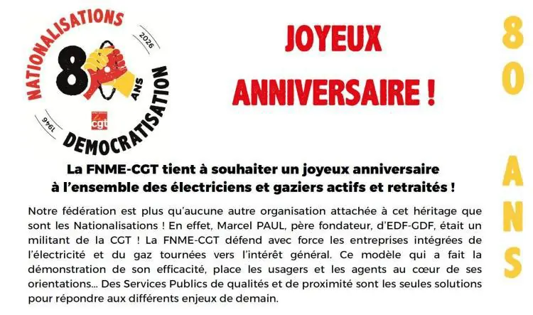 Joyeux anniversaire à tous.tes ! 🎂 Vive le service public de l'énergie !