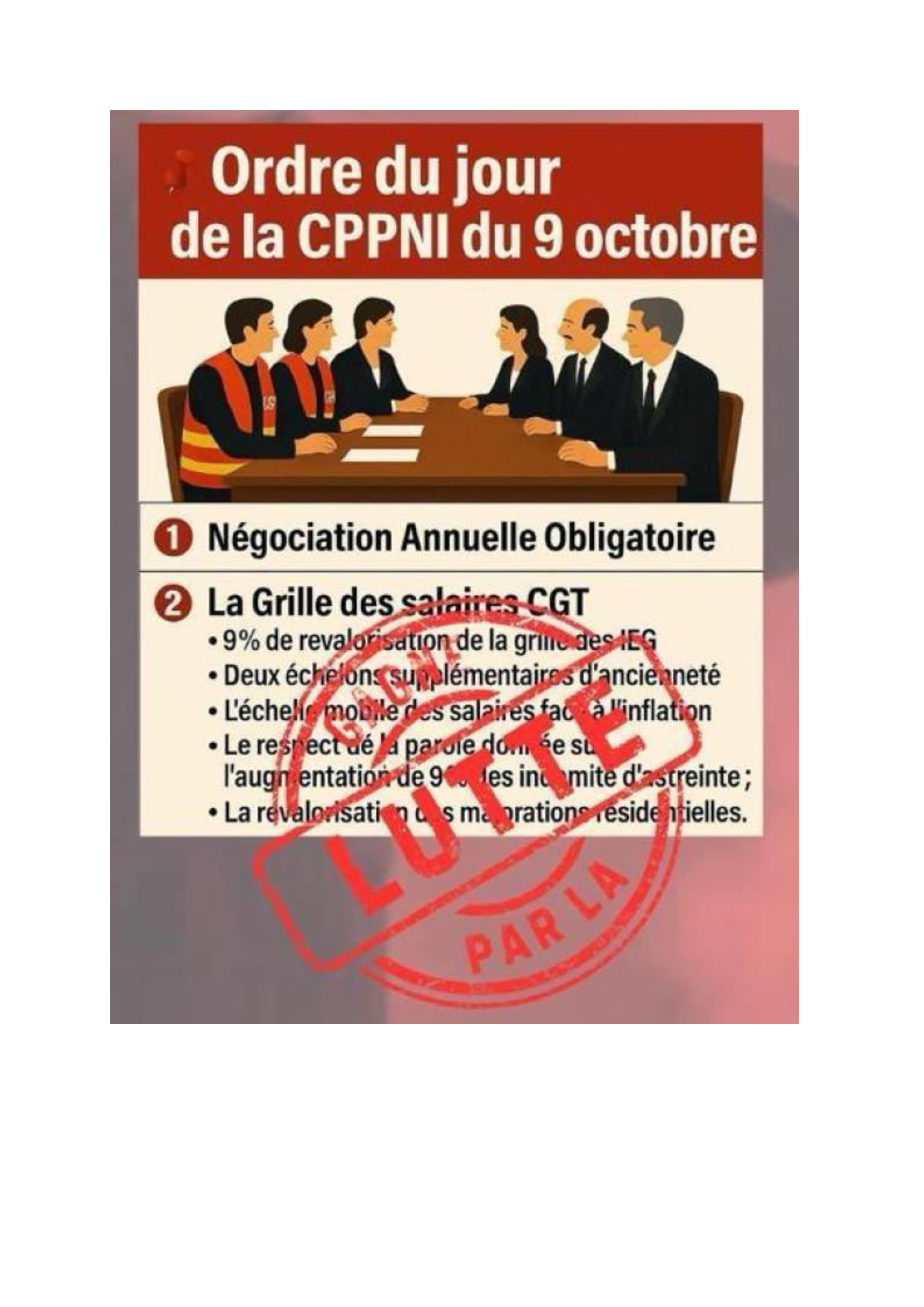 Depuis le 2 septembre, grâce à la mobilisation des électriciens et gaziers nous avons su imposer nos points sur la grille à la CPPNI (Commission Paritaire Permanente de Négociation et d'Interprétation de la branche des IEG).