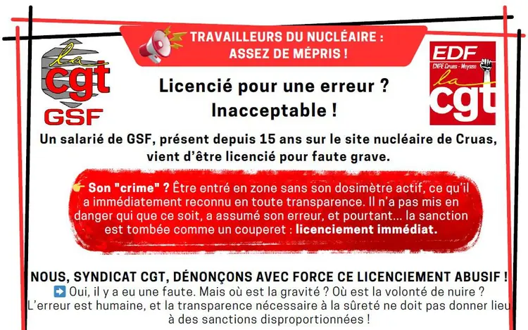 GSF : Licenciement abusif sur le CNPE : ne laissons pas faire !